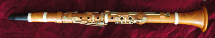 Based on originals by Wilhelm Hess Sr. of Munich (Nicholas Shackleton collection, Cambridge, and Thomas Reil collection, Stuttgart), this is an example of a German clarinet of the 1840-1860 period, suitable for the music of, for example, Schumann and Mendelssohn. With its ivory socket rings and flat leather pads, and in having its 14 brass keys mounted mostly on wooden rings or knobs, it is a fairly conservative design, though the advanced influence of such makers as Iwan Müller and Adolphe Sax is also seen in features such as ring keys for the right hand. In accordance with the rising