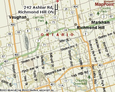 that runs east-west just north of Toronto but south of Richmond Hill (though